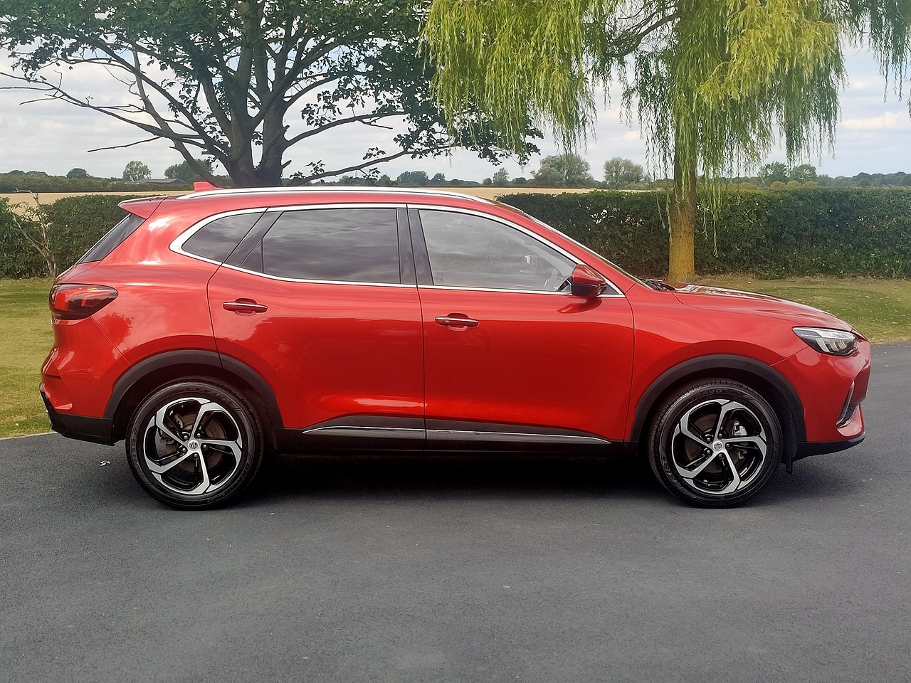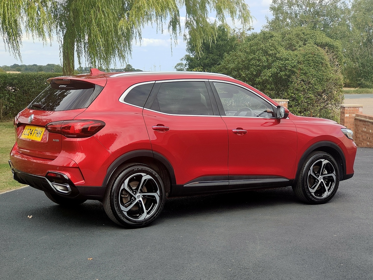 This MG HS Trophy, in manual transmission finished in Dynamic Red metallic, is a SUV known for its sporty design, spacious interior, and advanced features. It comes with a 1.5-litre turbocharged petrol engine producing 162PS and a 6-speed manual gearbox as standard. The Trophy trim includes features like heated front seats, dual-zone climate control, ambient interior lighting, rear privacy glass, and an upgraded 6-speaker audio system. It also features MG Pilot, a comprehensive suite of safety and driver assistance systems.