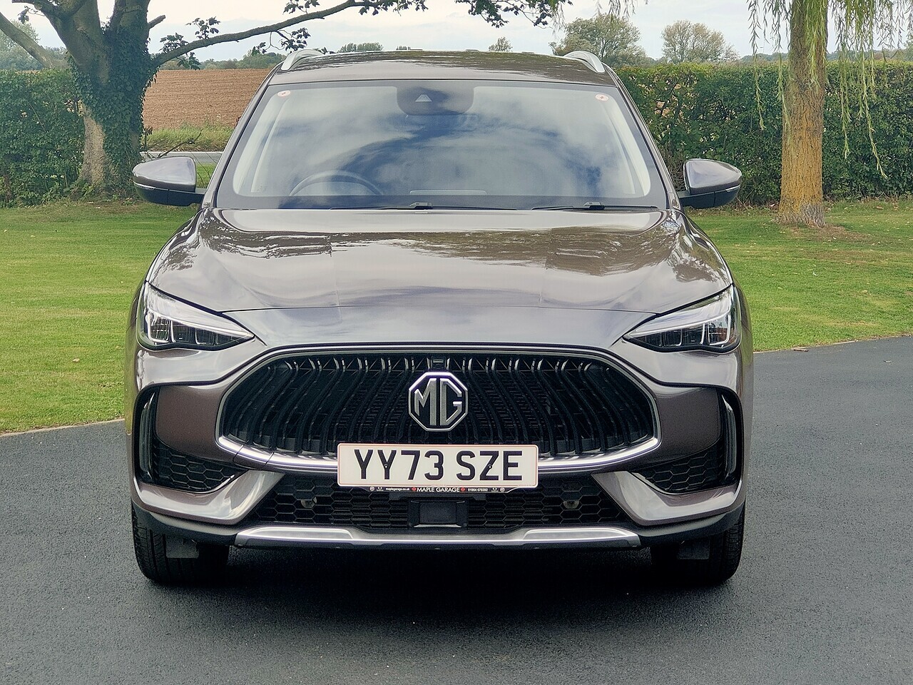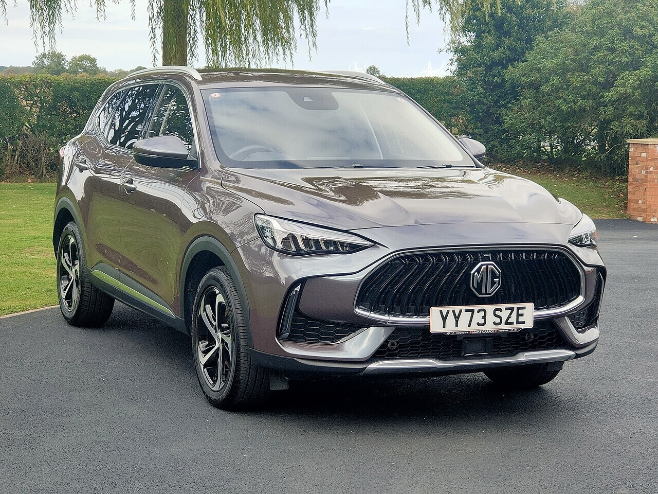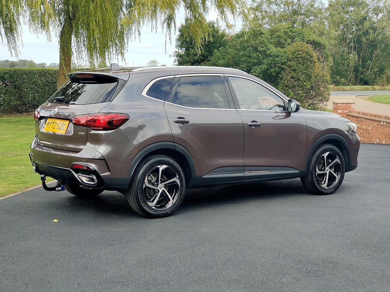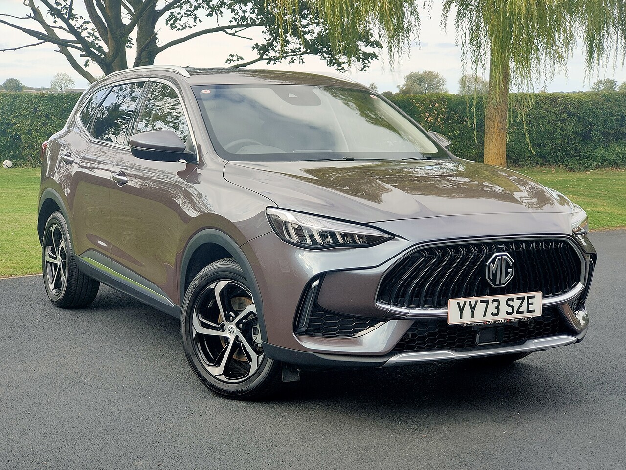 Late 2023 MG HS Trophy Auto finished in Urban Grey with black leather effect upholstery + a fitted detachble towbar + a space saver spare wheel + MG geniune car mats.