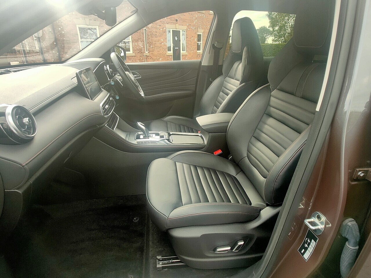 The 2023 MG HS 1.5 Trophy DCT in UK specification is a petrol SUV featuring a 1.5-litre turbocharged engine, a 7-speed dual-clutch automatic transmission, and Front-Wheel Drive. Key features include heated half-leather/Alcantara sport seats with red stitching, a 10.1-inch touchscreen with Apple CarPlay/Android Auto and navigation, a 360-degree parking camera, dual-zone climate control, and a comprehensive safety suite known as MG Pilot, which includes Active Emergency Braking, Lane Keep Assist, and Blind Spot Detection.