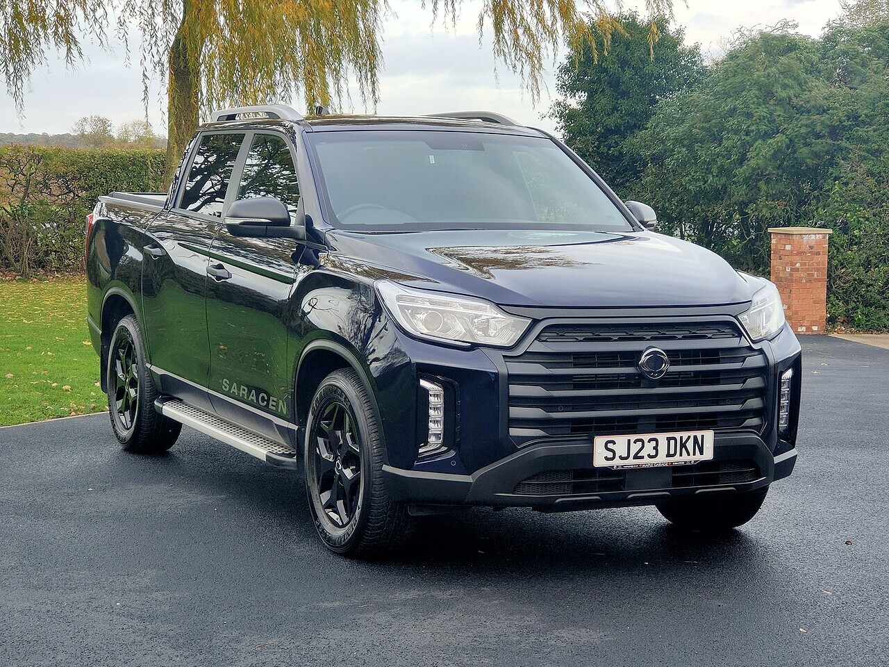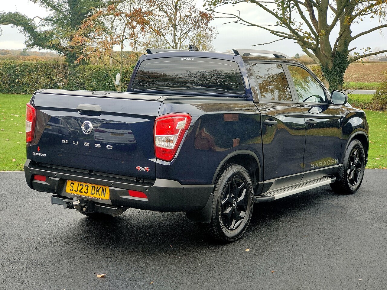 2023 SsangYong Musso Saracen (Q250 Model 200hp) finished in Atlantic Blue with charcoal black leather also featuring a towbar and roll & lock bed blind.