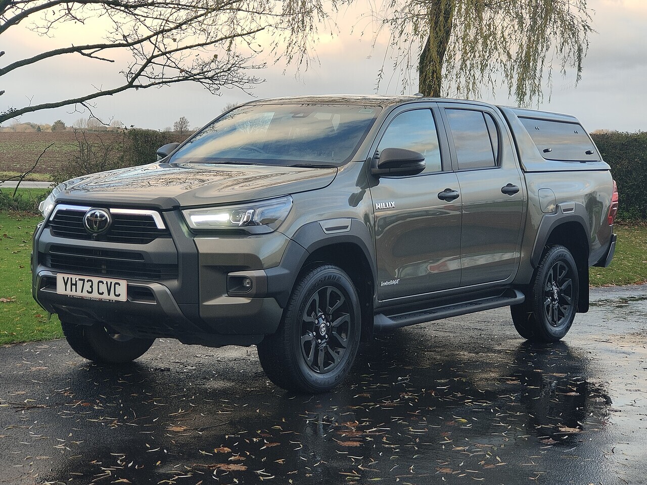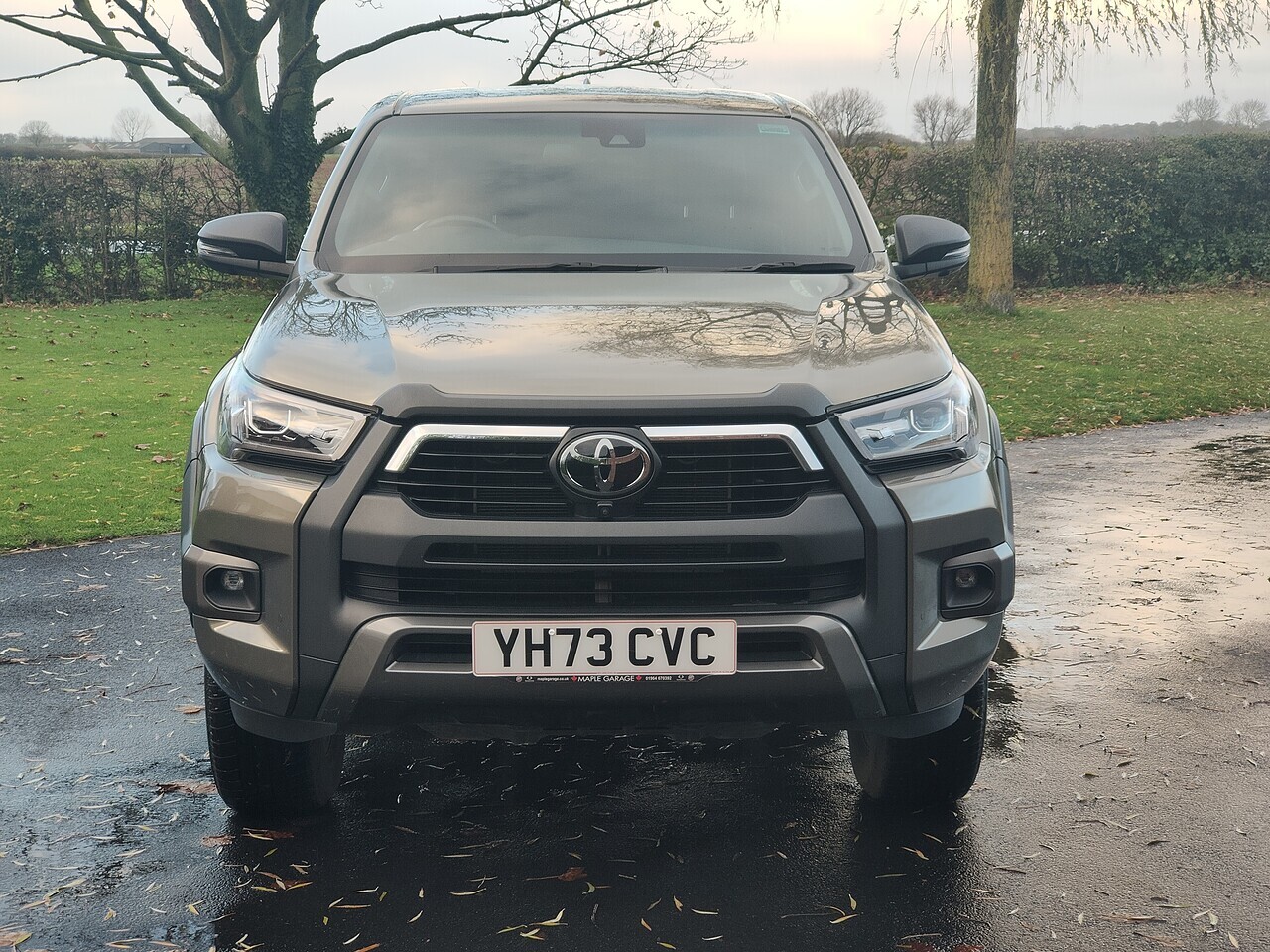 This February 2024 Toyota Hilux 2.8 Invincible X Auto comes with a 2.8-litre diesel engine producing 201 bhp and 500 Nm of torque, a 6-speed automatic transmission, and a 0-62 mph time of 10.7 seconds. Standard features include 18-inch black alloy wheels, a panoramic view monitor, power-adjustable driver's seat, and the Toyota Smart Connect+ multimedia system with Apple CarPlay and Android Auto.